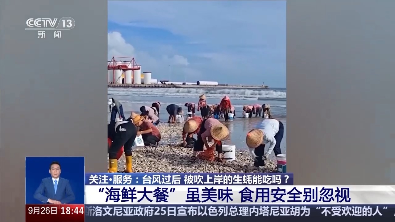 复旦中山厦门医院消化内科副主任医师 翁成钊:台风过后海滩上的海鲜往往来源不明,它们可能携带着如副溶血性弧菌、伤寒杆菌等致病菌,还有可能感染了像诺如病毒、甲肝病毒等病毒,存在着较高的食品安全风险,不建议食用。